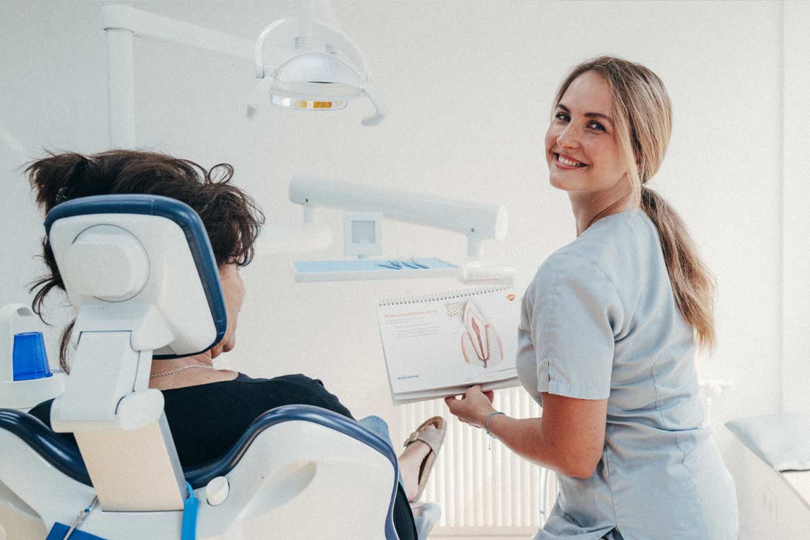 - Zähne wachsen nicht nach. Daher hilft mein Zahnarzt mir, dass sie gar nicht erst krank werden. Dafür komme ich regelmäßig zur Kontrolle. Nehme die Prophylaxe wahr. Erlerne die richtige Mundpflege. Und eine ausgewogene Ernährung. Falls doch mal eine Behandlung notwendig ist, dann nur mit neuester Technik und behutsamer Hand.
